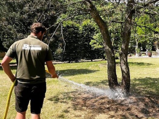 De boom verliest bij het rooien een deel van zijn wortels. Hierdoor kan de boom vaak niet genoeg water uit de bodem opnemen. En daarom is het voldoende water geven de eerste twee groeiseizoenen absoluut noodzakelijk. Na deze twee groeiseizoenen is het nog steeds van belang om bij droogte en/of hitte extra water te geven.